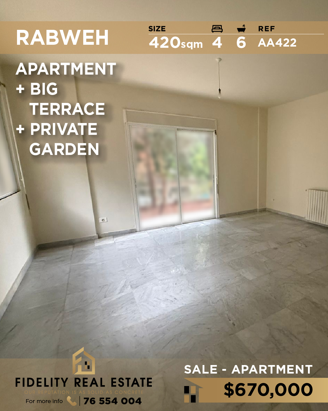 شقة غير مفروشة بمساحة ٣٠٠ متر مربع للبيع في بعبدا JT25